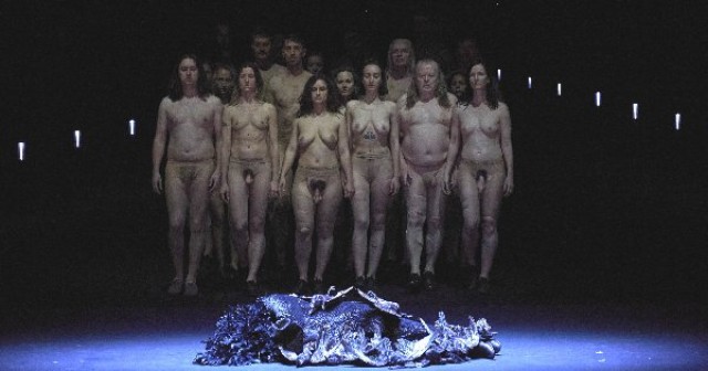 Nein, hier brachte Kosky als auf einen Punkt(strahl) und beließ es dabei. Sicher ist so eine größere Konzentration auf das unsägliche Tun der Lady und ihres immer wieder wankenden Partners intensiver darzustellen. Aber wäre das nicht genauso gut möglich, wenn man ihre Machenschaften in Beziehung setzte zu den anderen Figuren und zumal mit der Konfrontation der Hexen, die doch eine so zentrale Rolle spielen. Sicher, Kosky sagt, die Hexen seien sehr schwer darzustellen. Aber das ist eben eine der großen Herausforderungen genau dieses Stücks, und der sollte man sich vielleicht als Regisseur stellen. Hier singen sie also aus dem seitlichen Off, während eine fast nackte Schar von Statisten, die zum Teil wie eine Referenz an die LGBT-Community erscheinen, die Hexen auf der Bühne mimen und Macbeth immer wieder bedrohlich nahe treten.