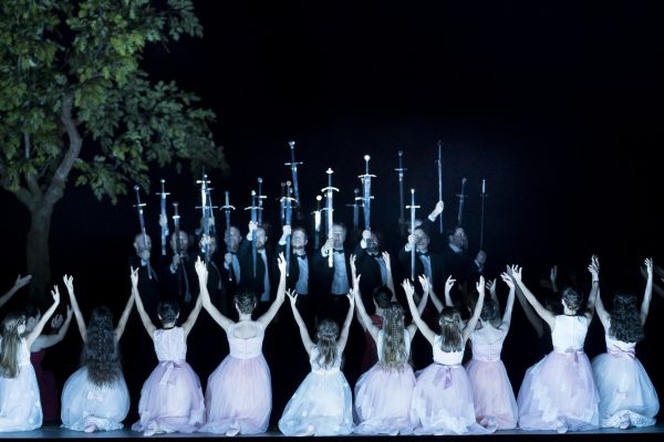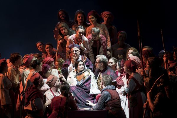 Dafür geht es am Königshof schrill her. König Karl VII. ist Dmitry Golovnin mit Brille und durchdringendem Charaktertenor. Auch Simona Mihai als seine Agnès Sorel dringt in die Ohren, aber da gibt es keine Entschuldigung. Martin Winkler spielt und singt den Erzbischof von Reims (eine Rolle, die ihn unterfordert), und man weiß, dass er sich keine Übertreibung entgehen lässt: Er enttäuscht diesbezüglich auch diesmal nicht.