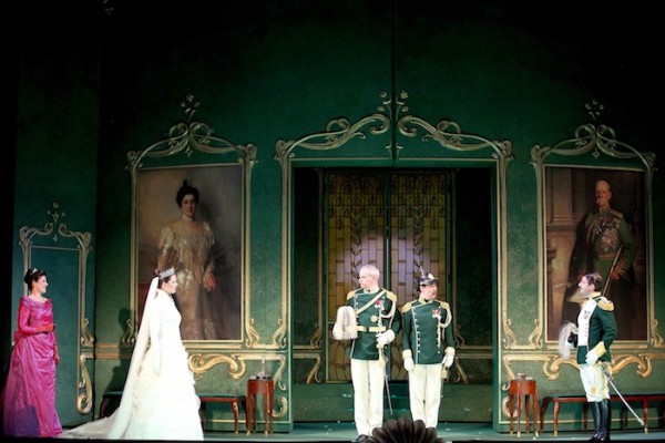 Auf der Bühne stand eine Mixtur aus der Erst- und Zweitbesetzung, aber richtig glücklich machte die Sängerschar auch nicht. Der gebürtige Pole Alexander Pinderak wirkte als Schwiegersohn des Fürsten Joachim an dessen Schloss – zwar wie im Buch vorgesehen – sehr verloren, das typische k.u.k.-österreichische Idiom traf er aber leider auch in der Umgebung seiner Landsleute im zweiten Akt nicht. Der sonst so verlässliche Tenor blieb blass und überzeugte auch sängerisch nicht wirklich. Besser schlug sich da Caroline Melzer als seine angetraute Prinzessin Helene. Anfangs mit etwas ungewohntem Timbre eher opernhaft ans Werk gehend, gelingt es ihr im Schlussbild durchaus zu berühren. Aber leider wird sie auch da von Regie und Kostüm in Stich gelassen, denn das neue Kleid, mit dem sie ihren Ehemann erotisch faszinieren soll, unterscheidet sich von ihrer vorherigen Garderobe nur wenig.