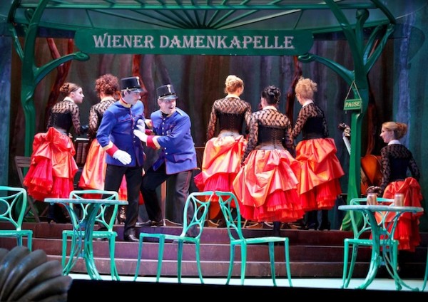 Für den intriganten Grafen Lothar, der selbst auf die Gunst von Helene hofft, holte Meyer Schauspieler und Namensvetter Markus Meyer vom Burgtheater. Als Karikatur eines Deutschen war er leider sehr zu Übertreibungen angehalten, in sängerischer Hinsicht hielt er mit den Profis erstaunlich gut mit. Der gebürtige Dresdner Andreas Daum hatte als sächselnder Fürst naturgemäß ein Heimspiel, als Oberkammerfrau Friederike war Regula Rosin resolut und erfreulich textdeutlich. Der bewährte Buffo Roman Martin zeigte als Leutnant Montschi ansatzweise wie man in Operetten gute Laune verbreiten kann, die Damenkapelle war regiemäßig zu klischeehaften jungen Mädels verdammt. Renée Schüttengruber folgte als Tschinellen-Fifi diesen Vorgaben leider, Martina Dorak gab hingegen der Kapellmeisterin Franzi Steingruber ihr ureigenstes wienerisches Profil, die beste Leistung des Abends! Licht (Gernot Kranner als Leiblakai Sigismund) und Schatten (Andreas Baumeister als Hausminister Wendolin) prägten auch die übrige Besetzung, der Volksopernchor durfte seine ganze Routine ausspielen, leider nicht mehr.