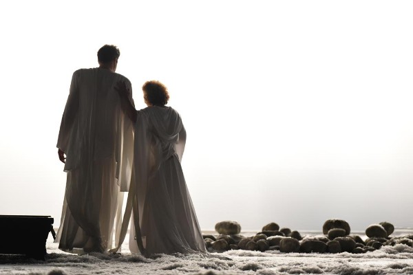 Im zweiten Aufzug wird das Bild von einigen zeitweise übertrieben agierenden Tänzer-Pärchen bestimmt, die künstlerisch gestylt sind und sich auch so bewegen, ja manchmal wie altgriechische Marmorstatuen wirken. Sie sollen mit ihren verspielten erotischen Aktionen unter und auf großen Tüchern wohl die Atmosphäre der kurzen Liebesnacht von Tristan und Isolde in all ihren möglichen Facetten metaphorisch ausleuchten. In der Tat wird es einmal so dunkel, das auch das Liebespaar nicht mehr zu erkennen ist. Herrlich dominieren dann der Brangäne-Ruf und das Orchester! Insgesamt ist die Personenführung sehr gut.