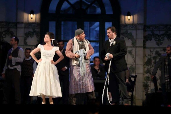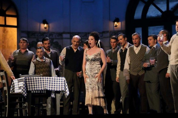 Die in Koproduktion mit dem Teatro San Carlo in Neapel entstandene Inszenierung wurde von Lorenzo Amato (Regie), Nicola Rubertelli (Bühnenbild), Giusi Giustino (Kostüme), Franco Machitella (Licht) und Giancarlo Stiscia (Choreographie) verantwortet. In einer überaus stimmungsvollen Osteria-Szenerie und mit passenden Kostümen gelang dem Team eine humorsprühende Interpretation. Von den vielen amüsanten Regieeinfällen sei wenigstens die Situation erwähnt, wenn der schüchterne Carletto endlich erfährt, dass auch Fiorina ihn liebt: Er will sie wiederholt mit dramatisch erhobenen Armen (wie wir dies aus dem Opernalltag kennen) umarmen, läuft aber ins Leere, weil seine quirlige Angebetete schon wieder woanders steht.
