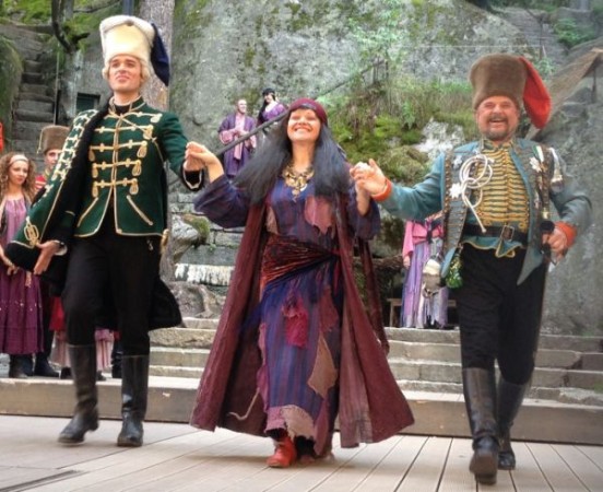Ja und ein Johann Strauss begeistert halt die Besucher im ausverkauften Rund der wunderschönen Naturbühne, die nach der gelungenen Renovierung noch ansprechender und einladender geworden ist, auf der Luisenburg in Wunsiedel immer wieder. Nach „Die Fledermaus“ vor 2 Jahren und „Der Vogelhändler“ im letzten Jahr, hatte man sich diesmal mit „Der Zigeunerbaron“ einiges vorgenommen. Gerade dieses Stück verlangt erstklassige Sänger, aber gleichzeitig auch erstklassige Schauspieler – und leider passt dies oft nicht zusammen. Bei Heinz Hellberg muss man hier keine Sorgen haben. Ein neues Ensemble konnte auf den Erfolgen der letzten Jahre aufbauen und diese sogar noch toppen, obwohl das schon sehr schwer ist. Und wie so oft in den letzten Jahren sah man auf dem Nachhauseweg nur fröhliche Gesichter und was kann man Schöneres über eine Operettenaufführung sagen.