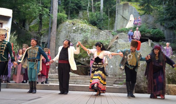 Und wieder macht es Freunde, diesen „Zigeunerbaron“ zu erleben. Altmeister Heinz Hellberg, der diesmal neben der Regie die Besucher begrüßte und dann den Taktstock an Dorian Molhov weitergab, inszeniert Operette so, wie sie der Liebhaber dieser Musikgattung erleben möchte. Tolle Kostüme von Lucya Kerschbaumer und ein tolles Bühnenbild von Adrian Boboc, die so herrlich auf eine der schönsten Naturbühnen Europas, der Luisenburg passen. Aufführungen in diesem Ambiente zu erleben, ist für mich immer ein besonderes Erlebnis, was ich nicht mehr missen möchte. Man verzeihe mir, dass ich die altbekannte Handlung nicht erzähle, sie dürfte jedem geläufig sein, jedenfalls jedem, der die Operette liebt. Und Heinz Hellberg lässt leicht und locker spielen und agieren und setzt die Pointen an die richtigen Stellen. Gelacht wird auch in diesem Jahr viel auf der Luisenburg.